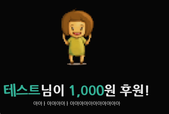 원하는 이미지를 올려서 크기, 각도, 위치 등을 조절하고 후원하기를 누르면 저런 식으로 방송에 나오니 참고하시면 되겠습니다.